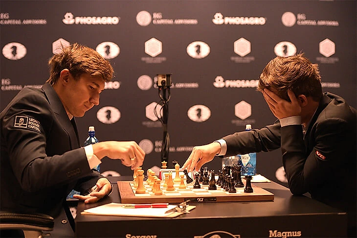 В матче на звание чемпиона мира-2016 между Магнусом Карлсеном и Сергеем Карякиным порядок игры белыми фигурами в последних шести партиях был зеркальным отражением порядка в первых шести: Карлсен играл белыми в 1-й, 3-й, 5-й, 8-й, 10-й и 12-й партиях.