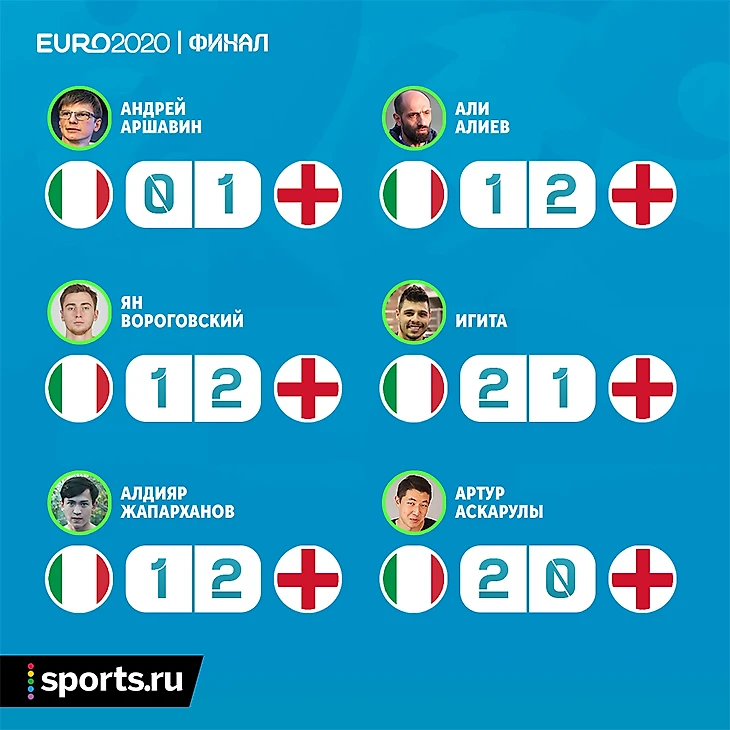 Финал Евро: Аршавин и еще 3 эксперта ставят на чемпионство Англии, Игита и блогер Артур верят в Италию