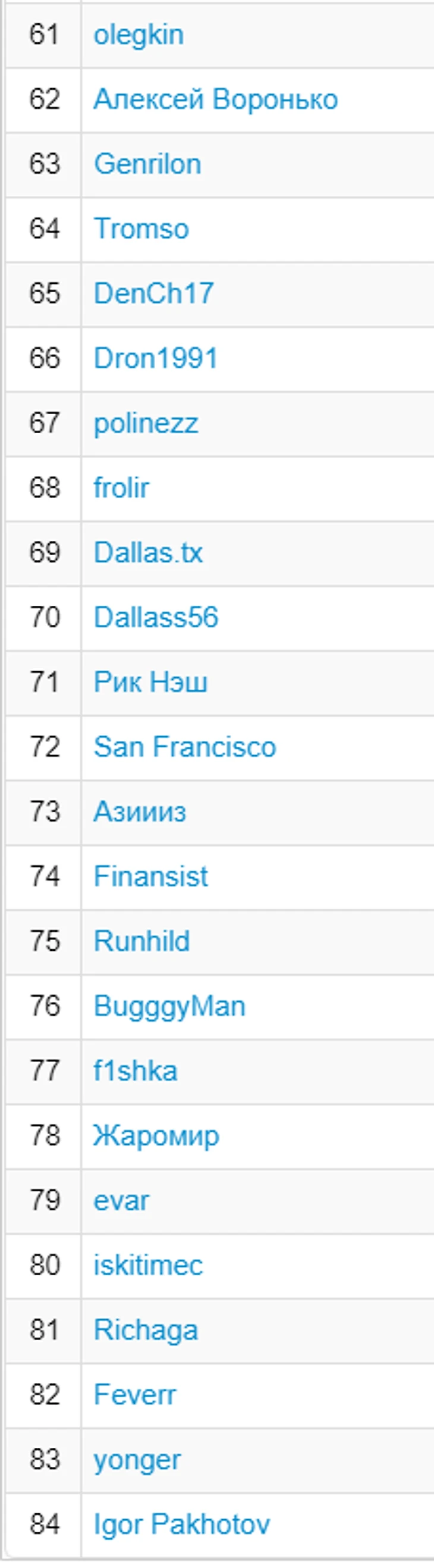 На старт телеграм кап по чемпионату Франции вышли 84 человека, а именно