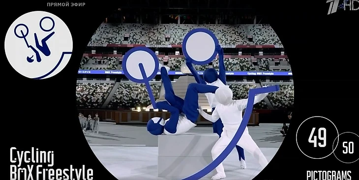 17:30. Представление пиктограмм 50 видов – феерия! Их все создали вживую несколько актеров. Подобные рисунки впервые появились как раз в Токио-1964 и с тех пор прижились.