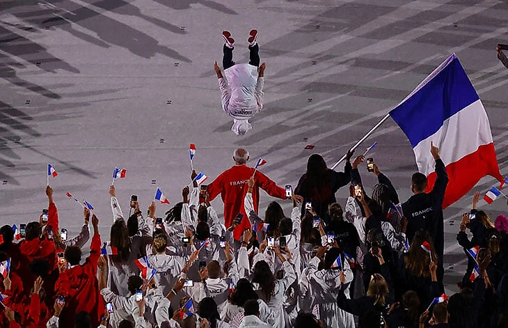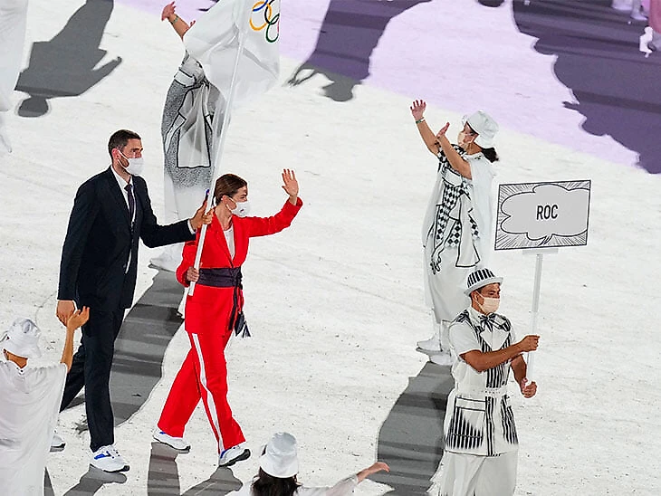 • Россия прошла в составе парада участников, флаг несли фехтовальщица Софья Великая и волейболист Максим Михайлов.
