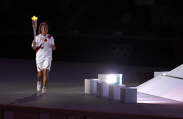 • Олимпийский огонь зажгла теннисистка Наоми Осака. Перед ней расступилась «Фудзияма».