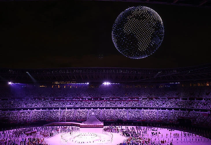 • Игры открыли при пустых трибунах, на арене были только 6000 спортсменов, а также почетные гости и представители медиа.