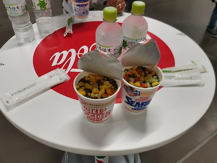 13:21. Так выглядит олимпийская еда – атмосферно, стереотипно, по-японски. Но это в пресс-центре для журналистов, конечно – спортсмены в деревне-то питаются не так.