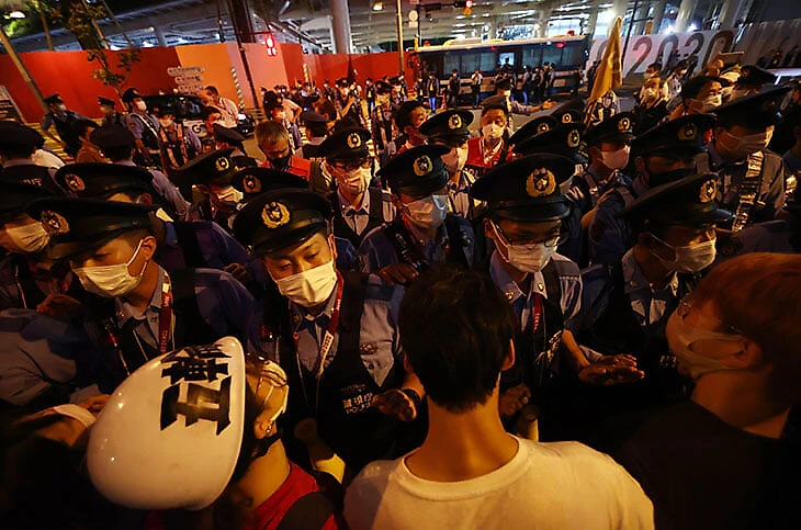 14:17. Хотя нет, не получилось закончить с проблемами: вокруг почти пустого стадиона неспокойно, там собрались люди, которым не нравится, что Япония во время пандемии проводит Олимпиаду.