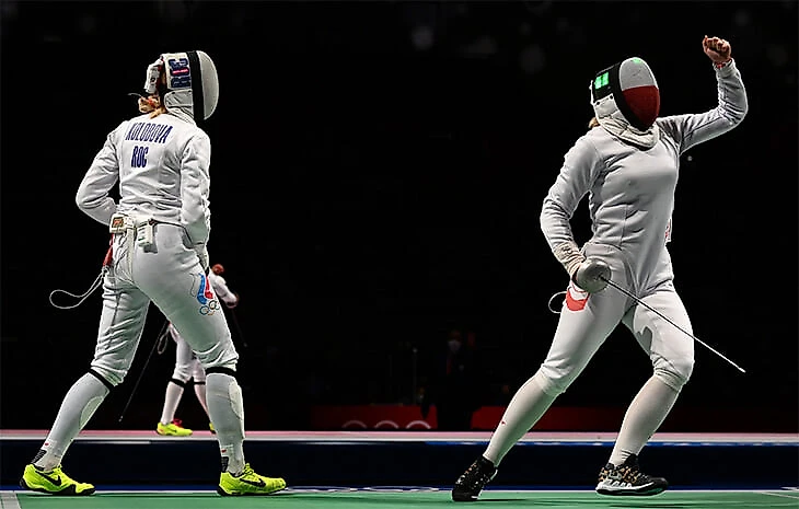 4:21. Айзанат Муртазаева со шпагой выиграла поединок 1/16 финала у кореянки и первой из наших прошла в топ-16. Дальше ждем Виолетту Колобову, лидера в этом виде – она вот-вот появится.