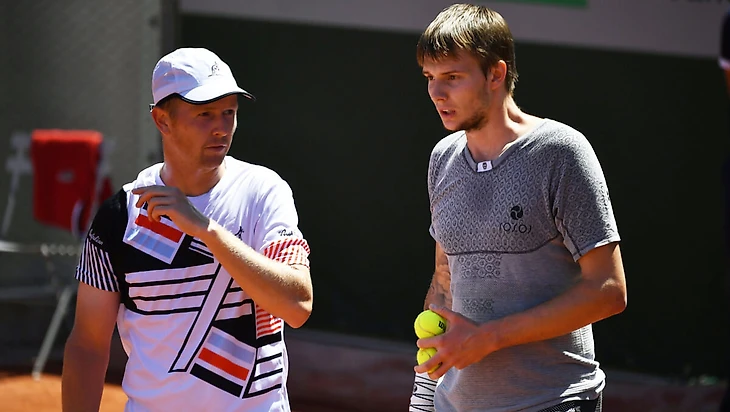 Александр Бублик и Андрей Голубев смогли забрать первый сет у Жереми Шарди и Гаэля Монфиса, однако уступили им два последующих и завершили выступления – 7:6, 6:7, 7:10.