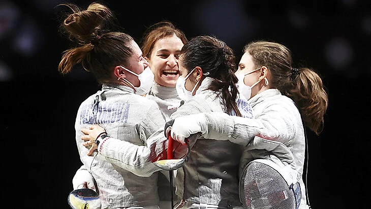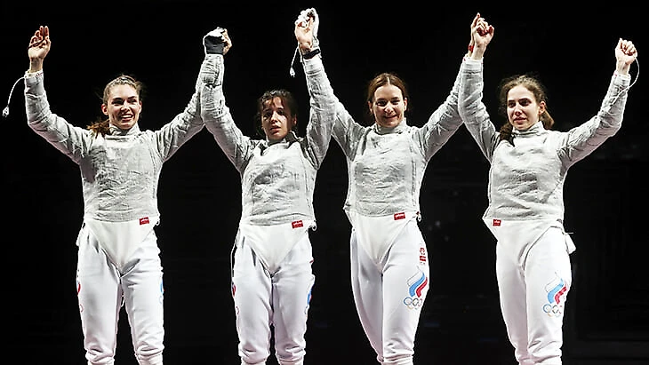 🥇 Команда саблисток взяла золотую медаль! Ольга Никитина, Софья Великая, София Позднякова в финале победили Францию. Проигрывали по ходу, все перевернула Никитина, было много напряженных отрезков с мини-провалами, но все это компенсировали, перекрыли и выиграли! Ход грандиозного финала – с 13:30.