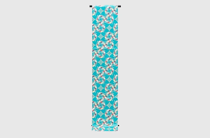 «Это первая обвязка для мешков, которую я попробовала на этот раз в технике плетения гобеленов. Венок из национальных цветочных тюльпанов красив, а казахстанский синий – прекрасное произведение», – описала Синкай.
