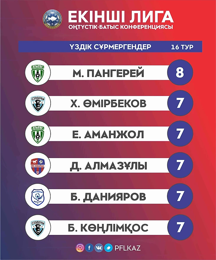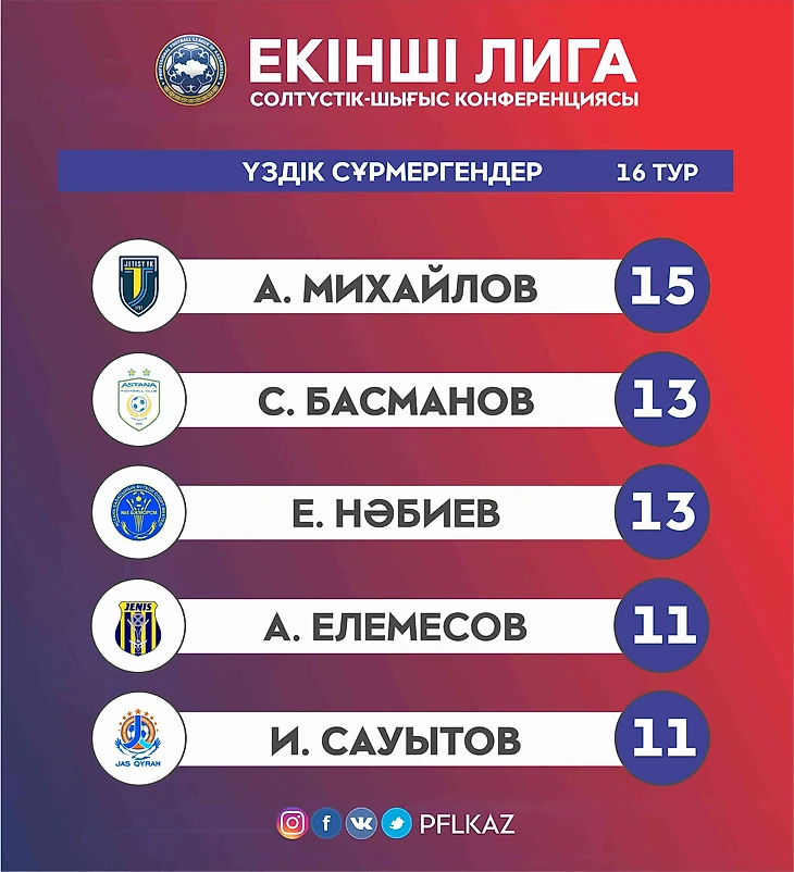 Екінші Лиганың үздік сұрмергені 16 турда 15 гол соққан
