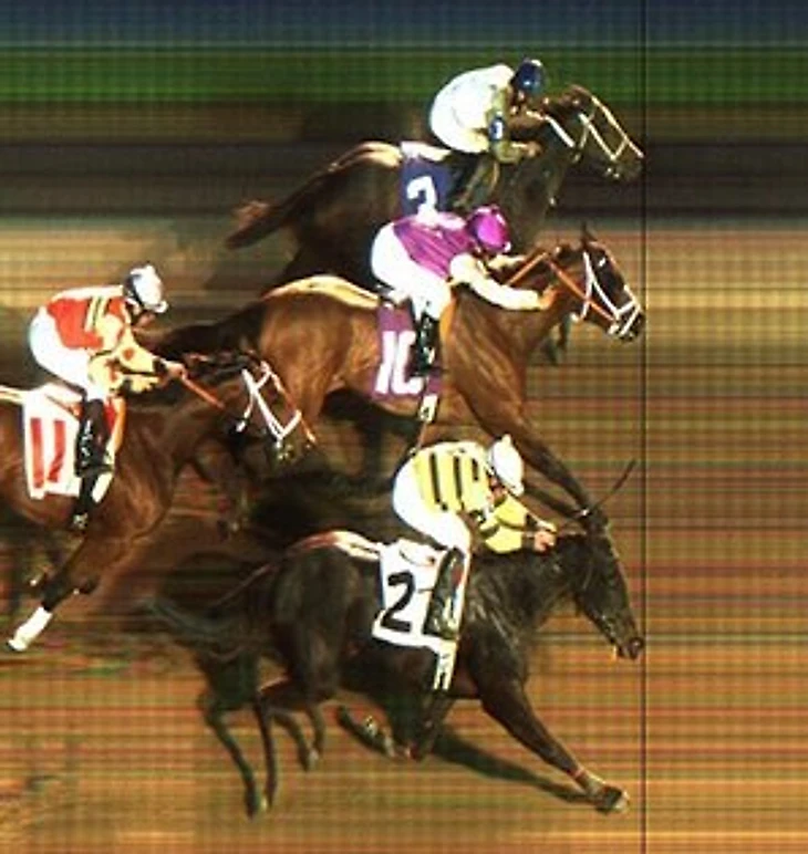В других видах спорта также встречаются одновременные финиши. Легкая атлетика, велоспорт, бобслей, конькобежный спорт… Больше всего таких примеров в скачках. Раньше в таких случаях назначали повторный заезд или делили выигрыш, если оба владельца соглашались на это. С развитием технологий число фотофинишей уменьшилось, но даже в наше время случаются тройные ничьи. На фото лошади All in the Art, Chessie Slew и Memories of Trina делят первое место.