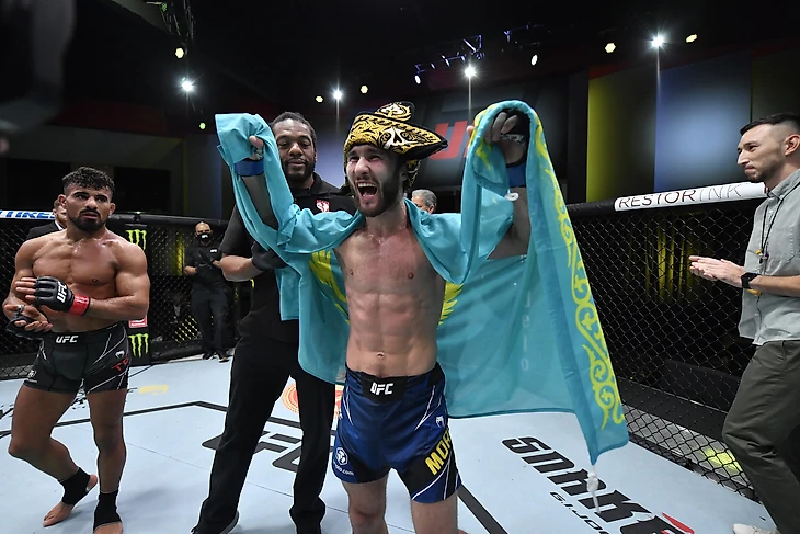 Не раз отмечали, что самым перспективным казахстанцем в UFC является Шавкат Рахмонов. «Номад» идет на серии 14-0 в профи-ММА. Оставив яркий след в российском М-1, Шавкат подписывается в UFC, став первым казахстанцем с контрактом в лучшей лиге мира. Но увы: сначала травма, а затем и пандемия не позволили Шавкату стать первым в октагоне.