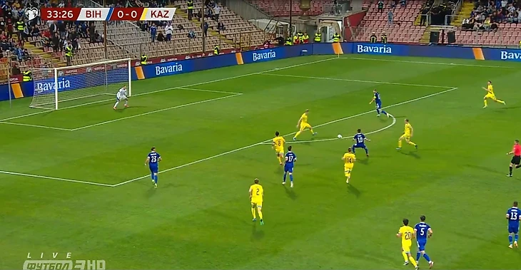 То как будет играть Казахстан было понятно изначально: оборона низким блоком, взаимная страховка на каждом участке поля, быстрые выходы в контратаки и расчет на стандарты. Боснийцам же предстояло придумать, как взломать оборону дисциплинированного соперника.