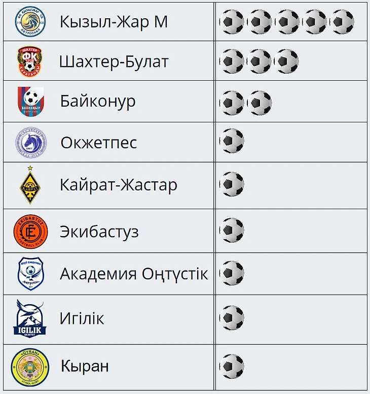 От настырности нападающего «Аксу» пострадали 9 клубов Первой лиги. Больше всего голов Турлыбек отгрузил фарм-клубу петропавловского «Кызыл-Жара», целых 5 мячей в двух встречах, в одной из которых молодой нападающий оформил покер.