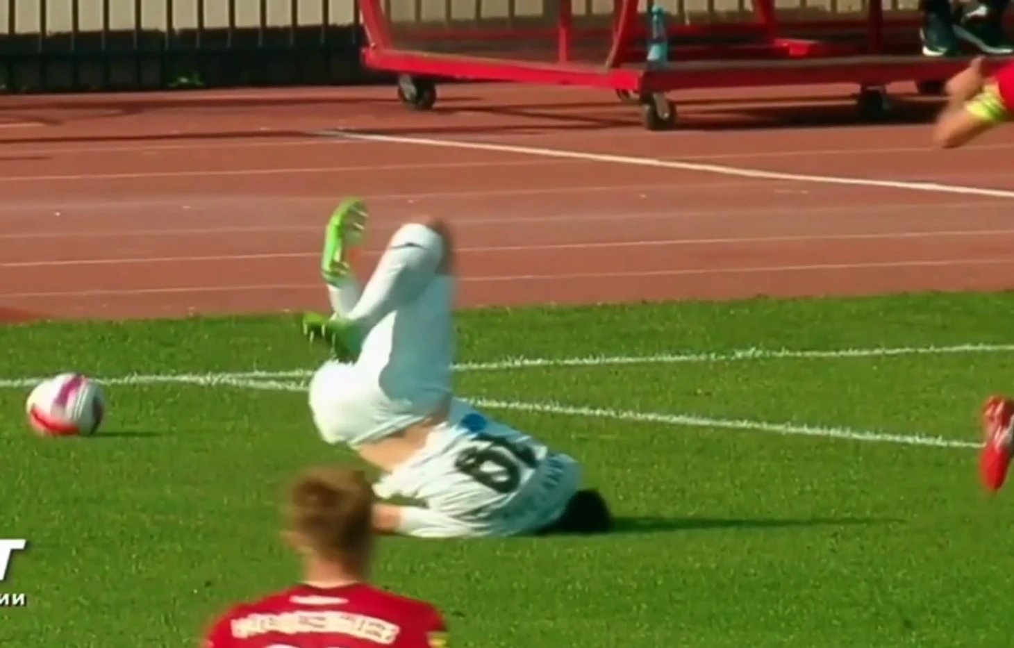 На 27 минуте матча случилась неприятная ситуация с участием нашего футболиста.