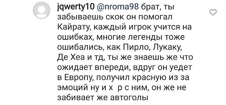 В соцсетях «Кайрата» фанаты по обыкновению выместили весь свой праведный гнев, а их основной мишенью стал антигерой встречи Абикен. Впрочем, были и те, кто старался поддержать Айбола!
