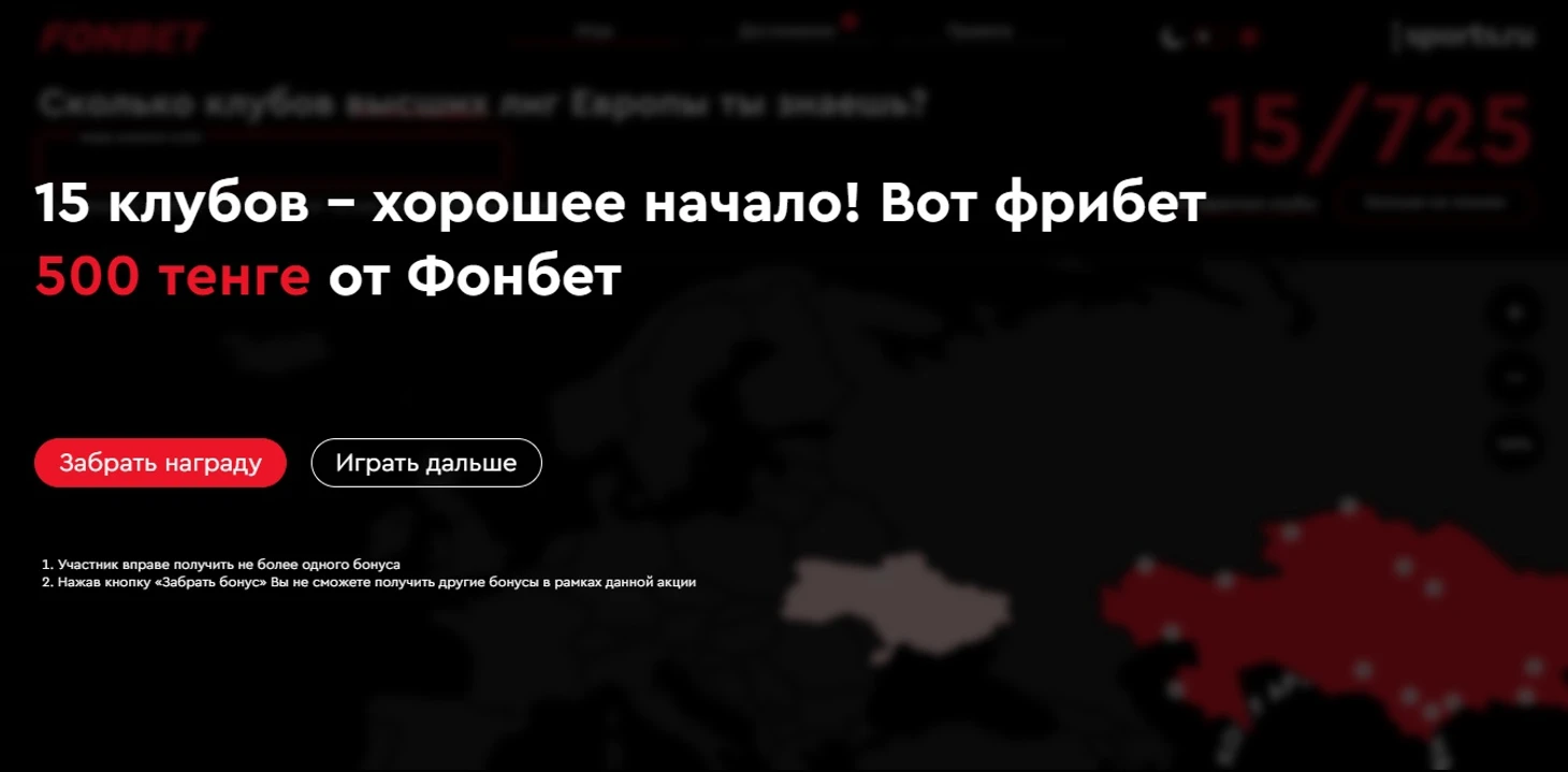Но самое приятное – фрибет. 500 тенге за первые 15 клубов. Это все команды КПЛ + знание еще хотя бы одной команды в Европе. «Барса» или «Реал» подойдут!