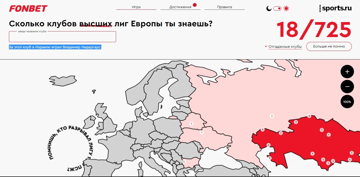 Правила, кстати, предельно просты. Нужно вспомнить как можно больше клубов из топ-лиг стран УЕФА. С каждым клубом из новой лиги на карте появляется очередная страна.
