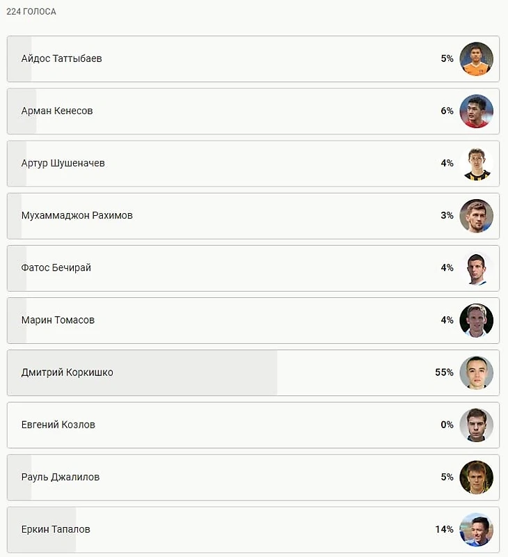По традиции, мы совместно с букмекерской компанией Olimpbet проводили опрос на лучший гол. Сильнее всего вам понравился мяч полузащитника «Актобе» Дмитрия Коркишко, не позволившего «Астане» победить всухую.