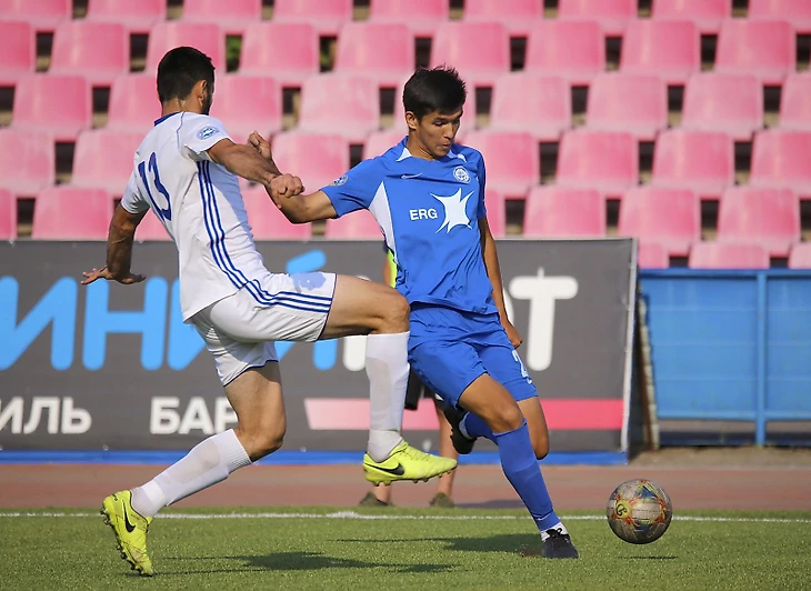 Мирас Турлыбек (в синем) в составе дубля павлодарского «Иртыша»