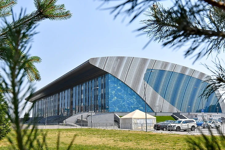 Дворец водных видов спорта — крупнейший объект по водным видам спорта в Европе (располагает 4 чашами). Спортсооружение предназначено для проведения соревнований по плаванию, синхронному плаванию, прыжкам в воду и водному поло. Такая универсальность достигается благодаря применению уникальной технологии: подъемное дно в прыжковом и соревновательном бассейнах позволяет менять глубину, в зависимости от проводимых мероприятий.