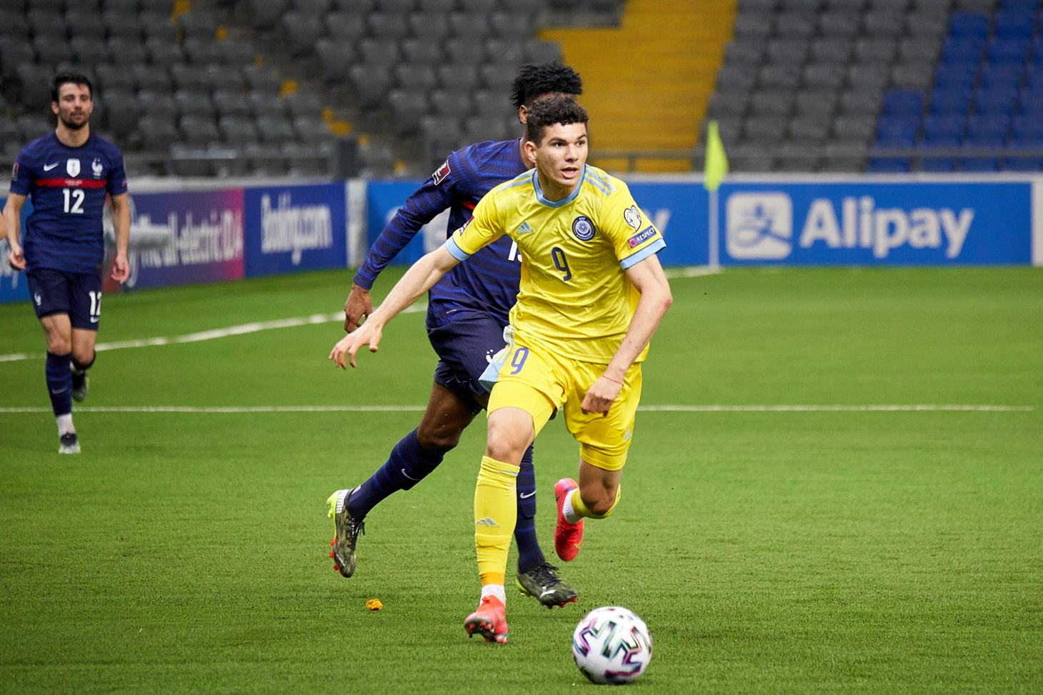 В главную сборную Казахстана первым вызвали Эльхана. В мартовском матче против сборной Франции футболист впервые дебютировал за национальную команду.