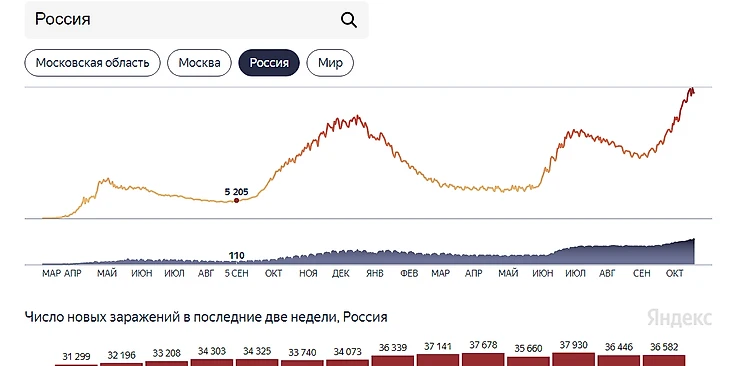 Яндекс опубликовал график заражений и смертей от Covid-19, из которого видно, что всплеск активности вируса приходится на 5 сентября. Именно тогда завершилась Паралимпиада в Токио и в Россию вернулась делегация ОКР и сборная.