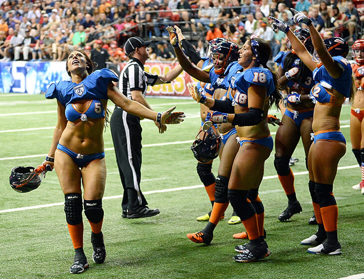 Исследование 2015-го, опубликованное в научном журнале о социологии спорта, выявило интересный контраст. Комментаторы матчей LFL в основном сосредотачивались на спортивной составляющей действа и говорили об атлетических качествах участниц, стратегии и так далее. Но картинка при этом была чрезвычайно сексуализированной и нацеленной на то, чтобы показать спортсменок в интимных подробностях.