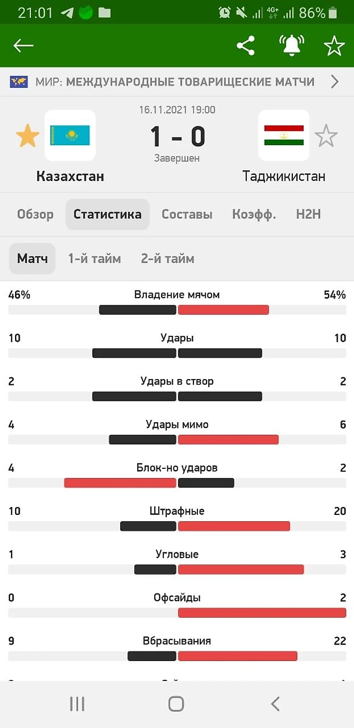 Через несколько дней прошел товарищеский матч против Таджикистана, где наши минимально победили. Но эта победа не принесла позитивного настроя фанатам сборной. Всех пугала плохая игра казахстанцев: по статистическим данным, наши были слабы во всех аспектах игры.