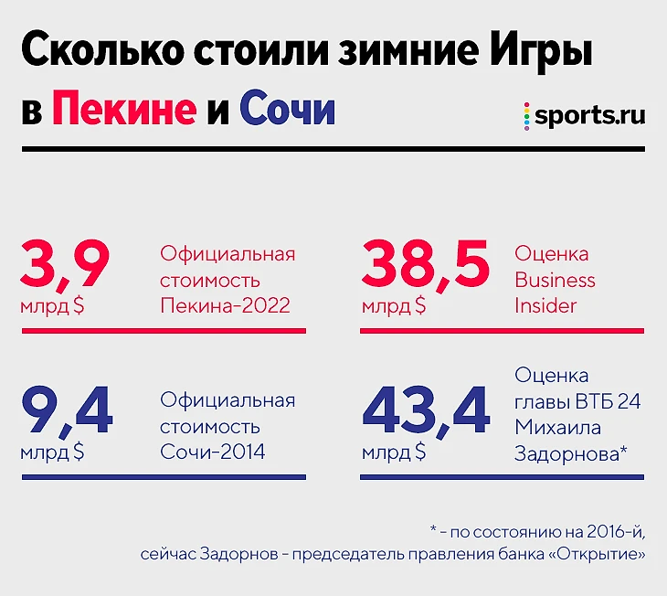 Пресс-секретарь президента России Дмитрий Песков же призвал ориентироваться на официальные данные и «не суммировать расходы чисто олимпийские и инфраструктурные».