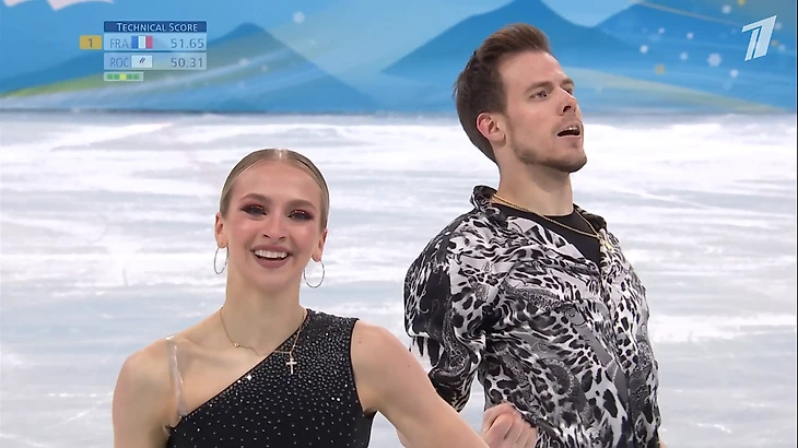 Получают 88.85 - это их личный рекорд! Они вторые - сразу за французами Габриэлой Пападакис и Гийомом Сизероном (90,83).