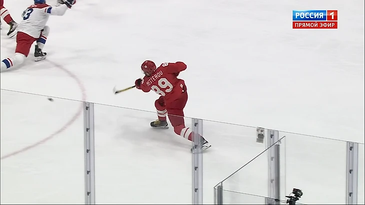 Арсений Грицюк с передачи Никиты Гусева реализует выход один-на-один. Две последних шайбы у России забросили нападающие "Авангарда". Да и пропускал их вратарь "Авангарда".