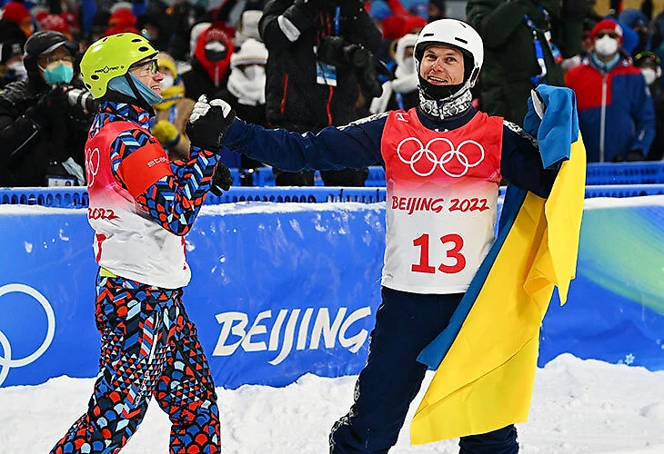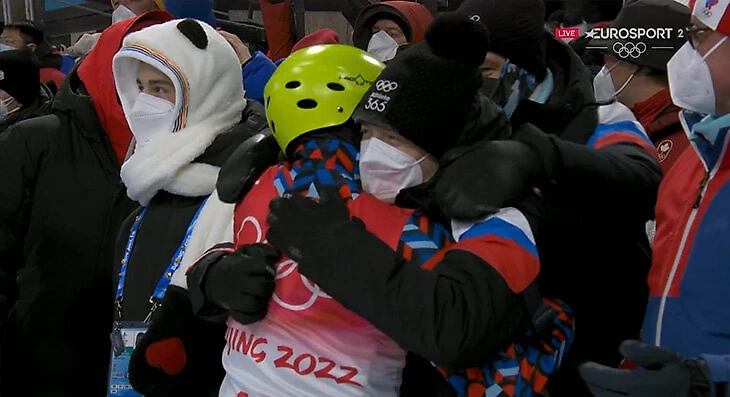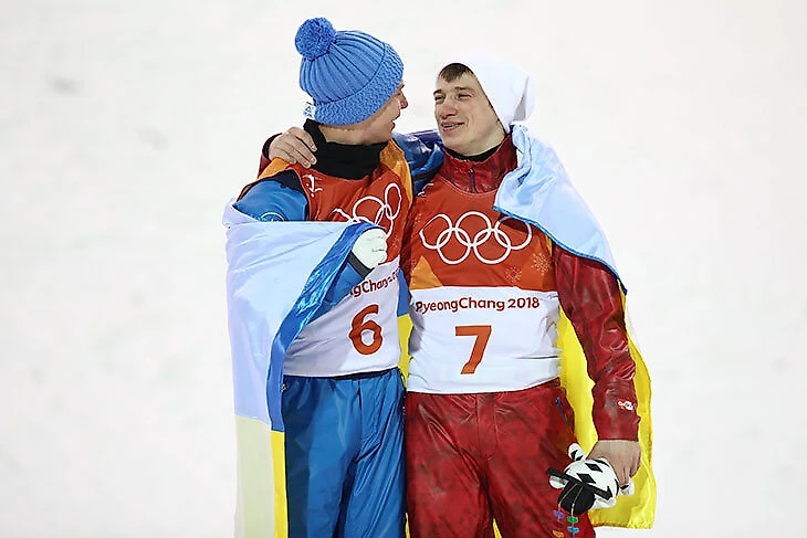 Фото дня. Наш фристайлист Илья Буров и украинец Абраменко на подиуме Олимпиады (даже обнялись)