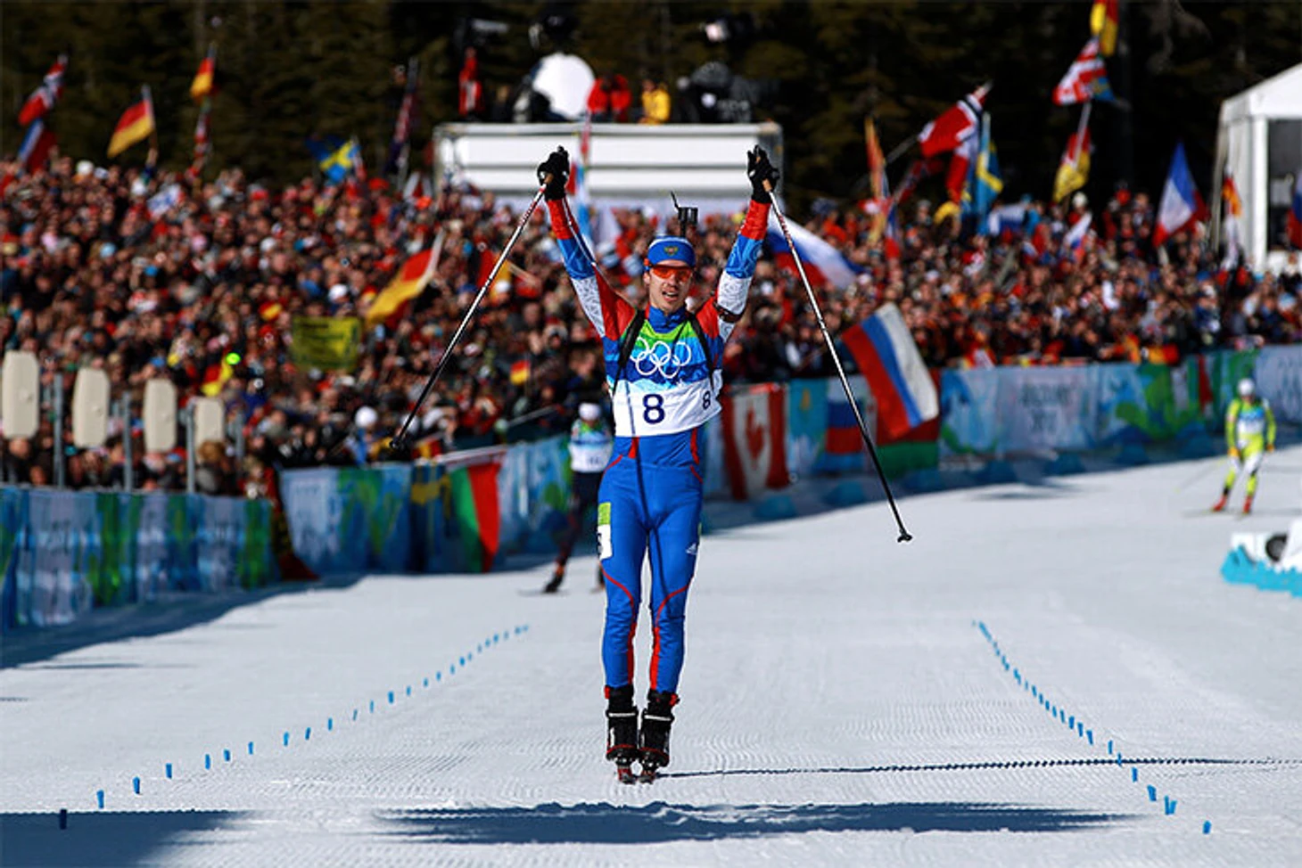 В Ванкувере Устюгов выиграл золото в масс-старте. Возможно, вы помните, как Евгений прошел четыре рубежа без промахов и на последнем круге отстоял первое место, несмотря на преследование молодого и еще совсем не титулованного Мартена Фуркада.