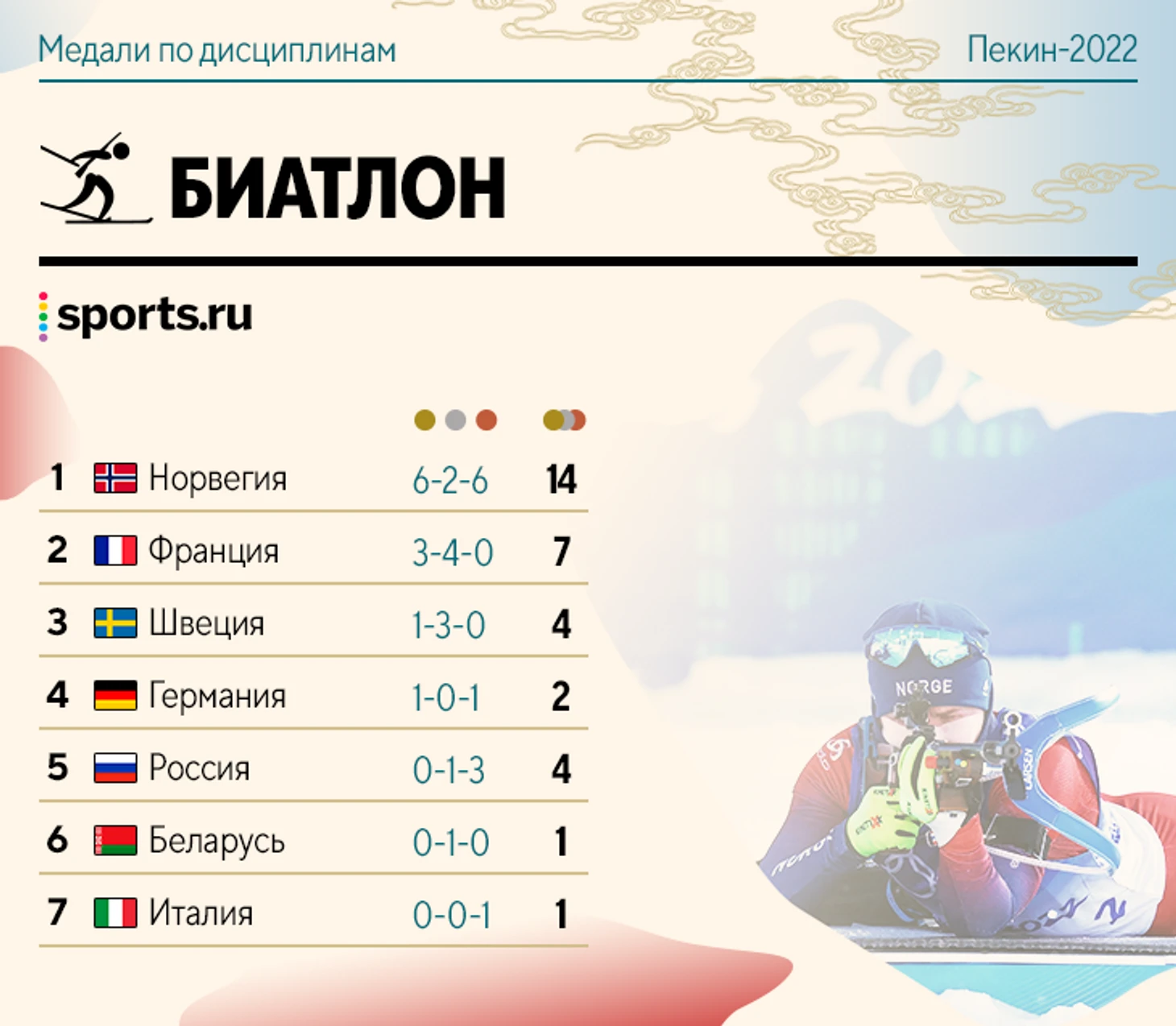 Медальный зачет Олимпиады-2022 с отрывом выиграла Норвегия (16 золотых медалей, всего 37 наград). Доминирование норвежцев предопределили успехи в биатлоне и лыжах.