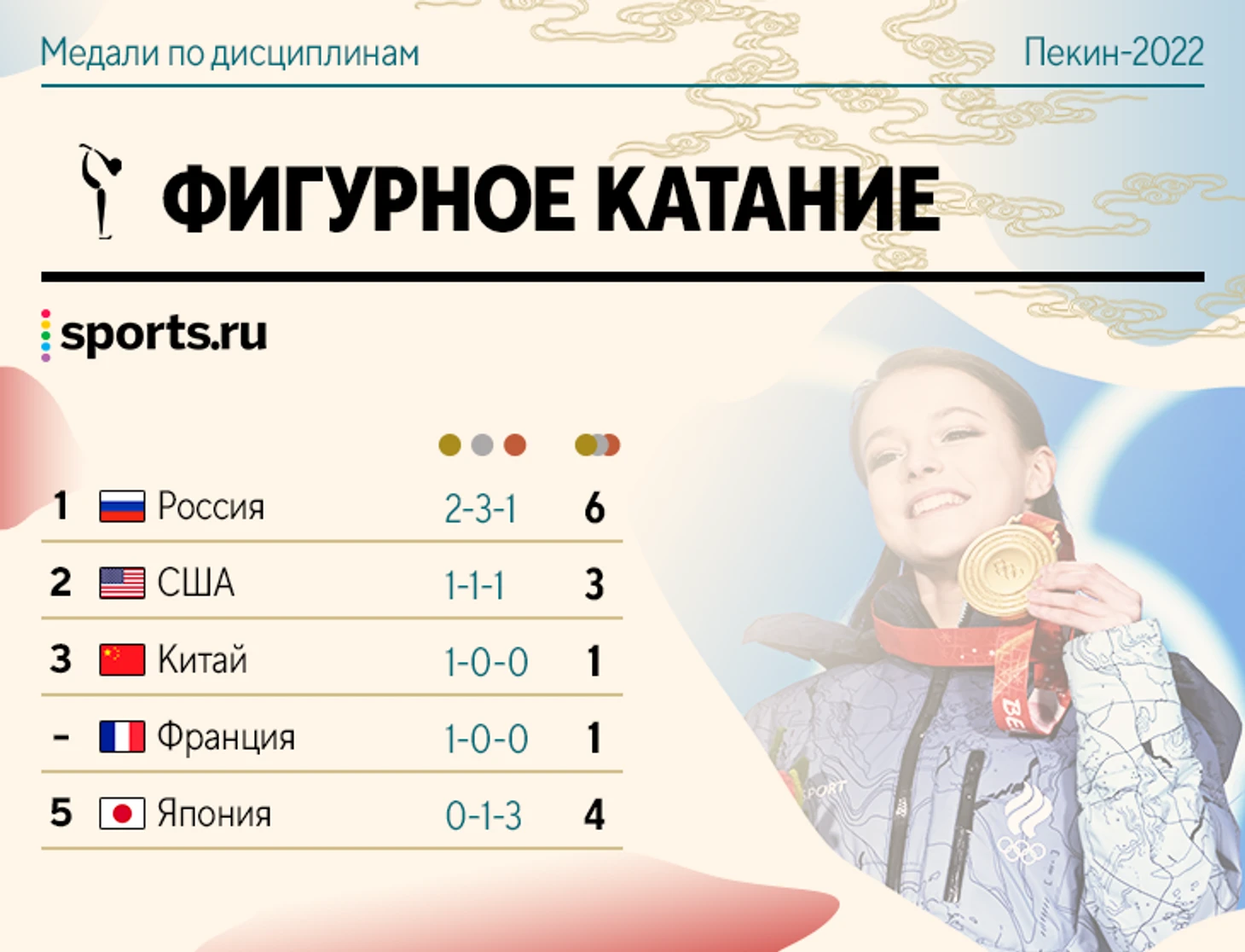 Медальный зачет Пекина-2022 по видам спорта: Россия забрала фигурное катание, Норвегия – биатлон, Нидерланды – коньки