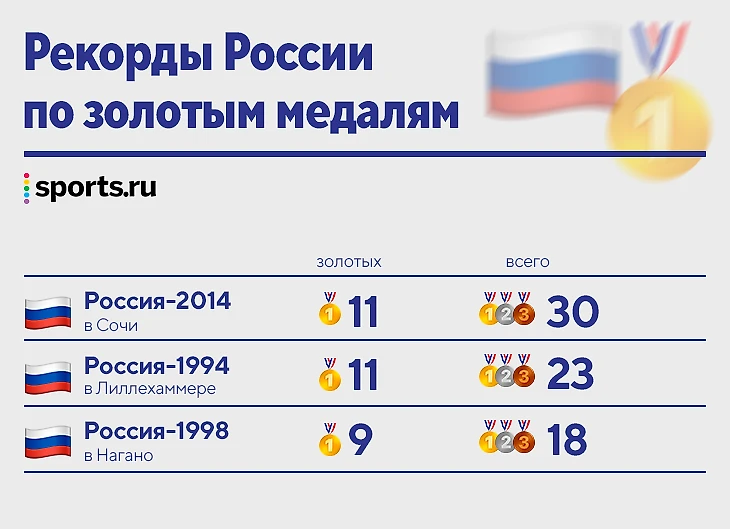 Золотой максимум России – 11 медалей (Сочи-2014 и Лиллехаммер-1994). Мы еще поговорим об этом.