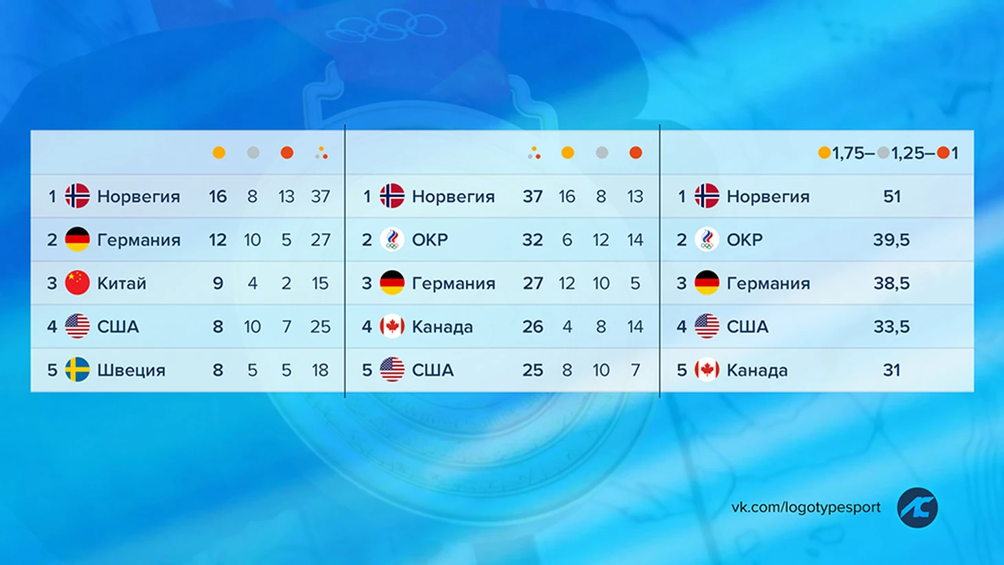Кажется, что оба подхода не совсем объективны и даже абсурдны, зато в зависимости от медального актива, удобнее играть цифрами и использовать тот вариант, при котором команда занимает более желаемую позицию. Наверное, достаточно справедливый подход для понимания уровня развития спорта в стране использовался Спорткомитетом Советского союза, когда считали не награды, а очки за места, занятые с первого по шестое. За золото начислялось семь баллов, за серебро — пять, за бронзу — четыре и так далее. Болельщики же иногда упрощают данную схему до простых 3‒2‒1.