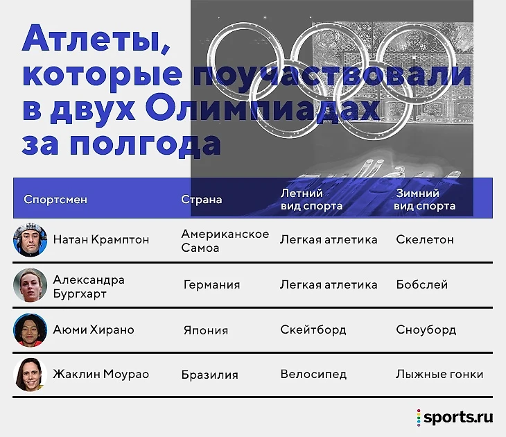 Бургхарт – не совсем уникум. На Олимпиаде-2022 есть еще три спортсмена, которые приехали на Игры второй раз за полгода. Конечно, такая короткая дистанция возможна только из-за коронавируса, сдвинувшего Олимпиаду в Токио. Но тут гораздо важнее универсальность атлетов – соревнуются круглый год в полярных видах спорта.