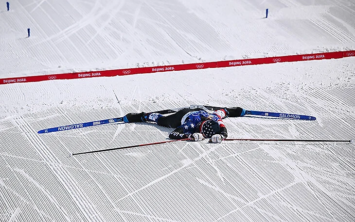 Но самый эмоциональный момент – финиш американки Джесси Диггинс. Лыжница с большим отрывом стала второй, но сразу после преодоления черты упала плашмя – без движений и с тяжелым дыханием.