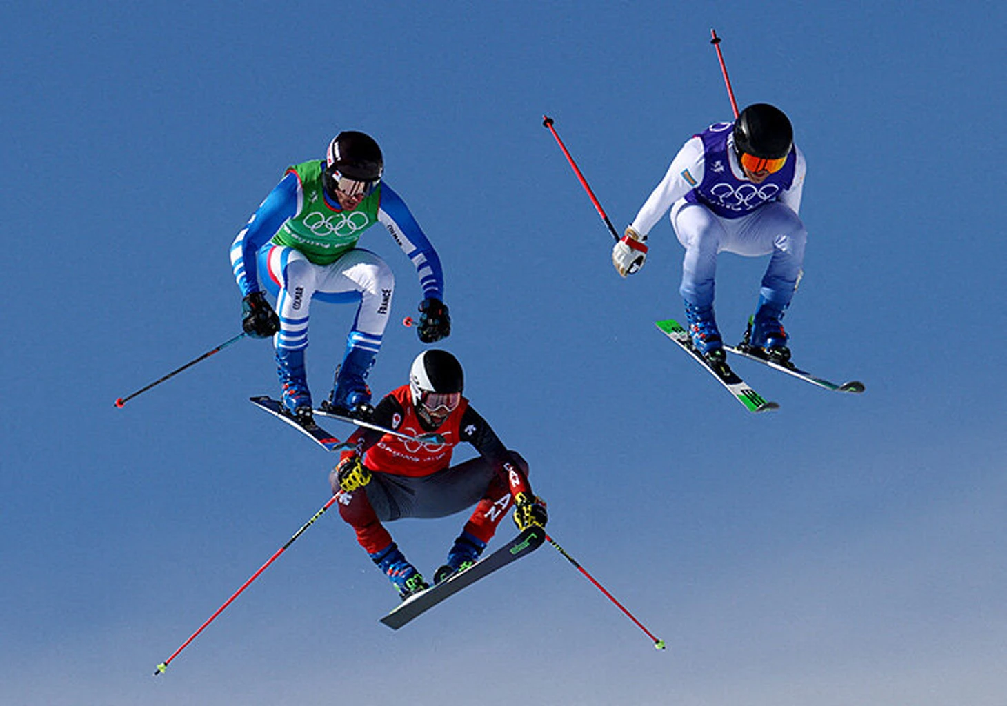 18 февраля. Фристайл, ски-кросс. Эрик Моберг из Швеции, Франсуа Плас из Франции и Джаред Шмидт из Канады.