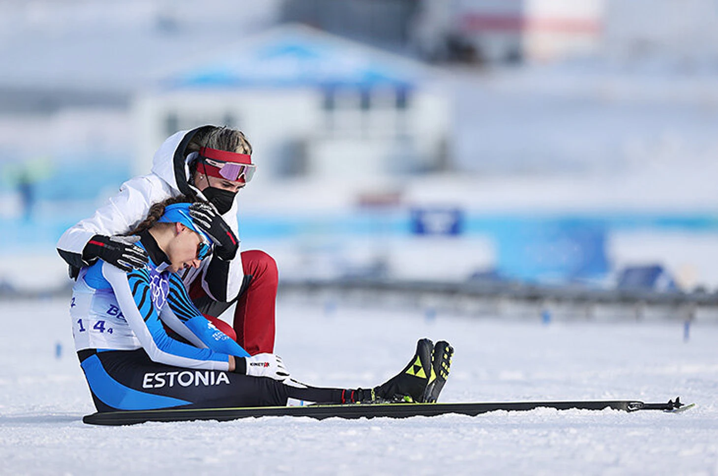 12 февраля. Лыжные гонки. Авели Уусталу из Эстонии с неопознанной спортсменкой из сборной Латвии.