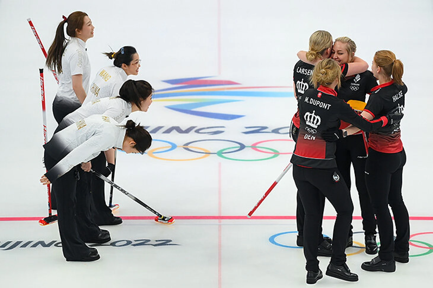 10 февраля. Керлинг. Сборные Китая и Дании после игры.
