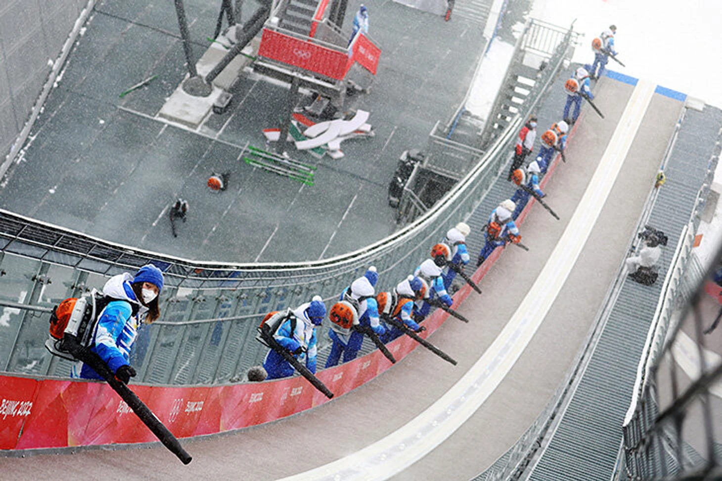 17 февраля. Лыжное двоеборье. Очистка трамплина от снега.