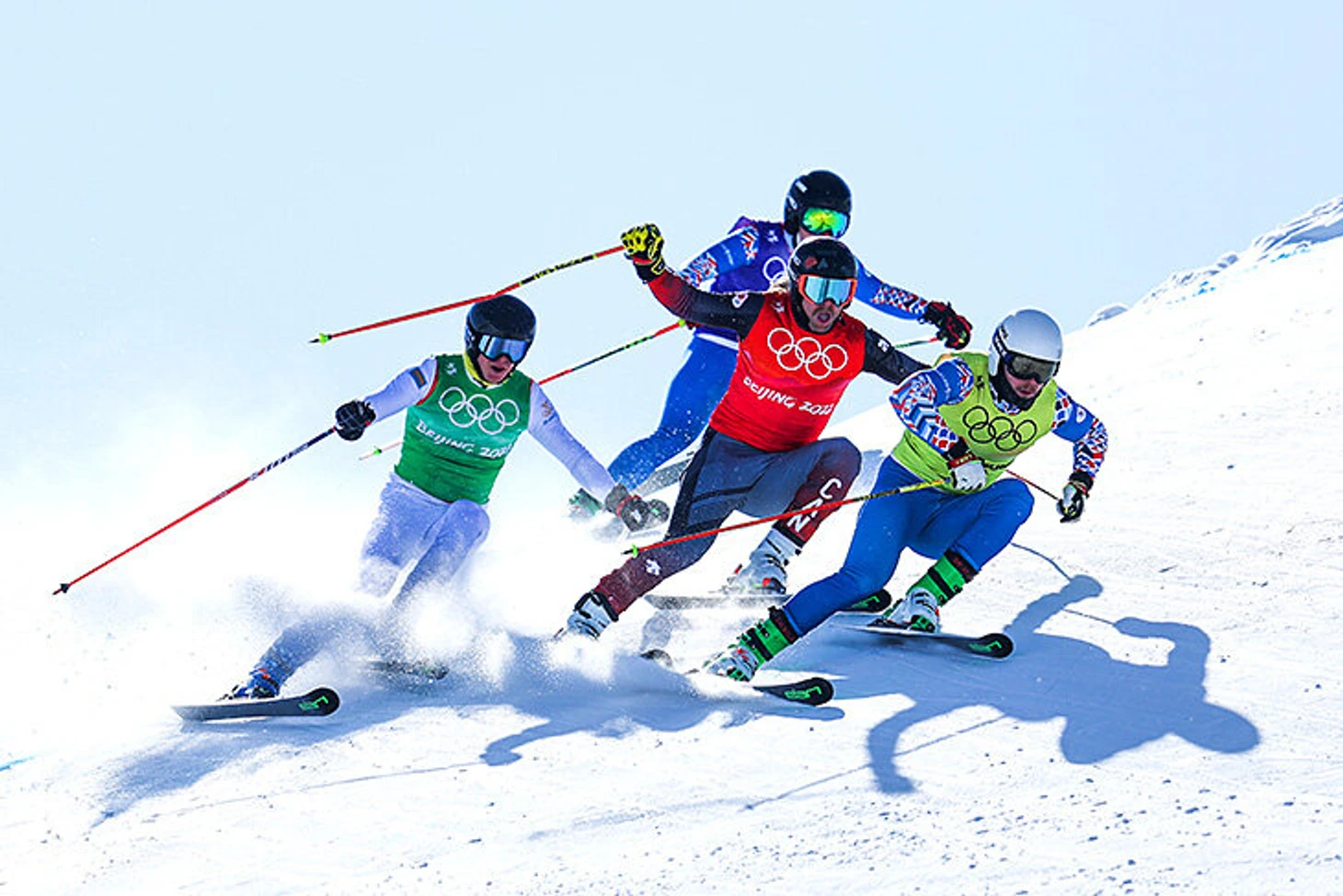 18 февраля. Фристайл, ски-кросс. Сергей Ридзик из России, Брэди Леман из Канады, Кирилл Сысоев из России и Давид Моберг из Швеции.