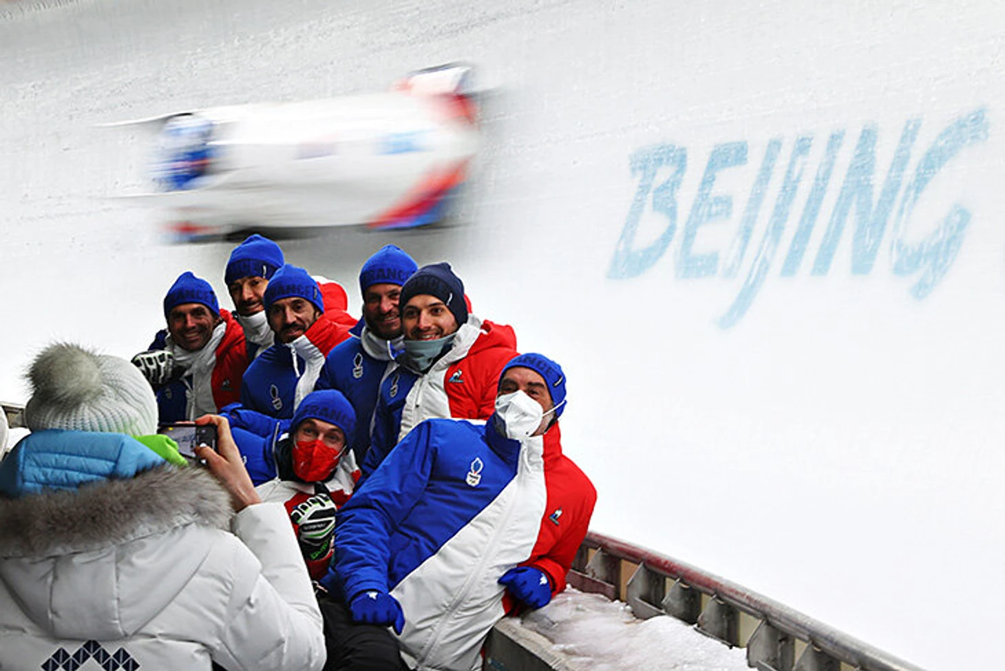14 февраля. Бобслей. Сборная Франции на переднем плане, Доминик Дворак и Якуб Носек из Чехии – на заднем.