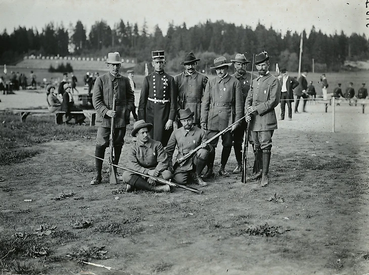 1912 год. Стокгольм. Олимпийские игры. Команда России по стрельбе и шведский лейтенант Ловенхильм