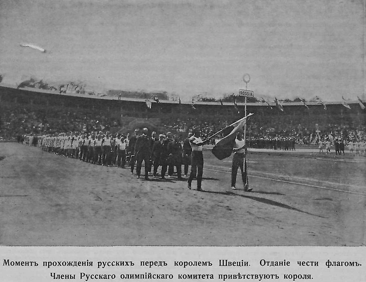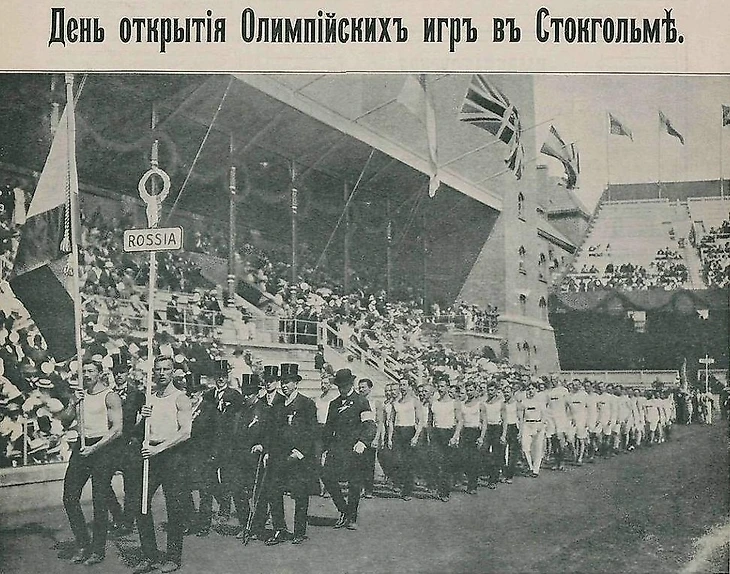 6 июля 1912 года. Стокгольм. Олимпийский стадион. Церемония открытия. Делегация России насчитывала 175 человек (по другим данным - 181, а по третьим - 159 действующих спортсменов) , среди них не было ни одной женщины. Наибольшее представительство в ней имели уроженцы Прибалтийского края (Эстляндской и Лифляндской губерний) и Санкт-Петербурга