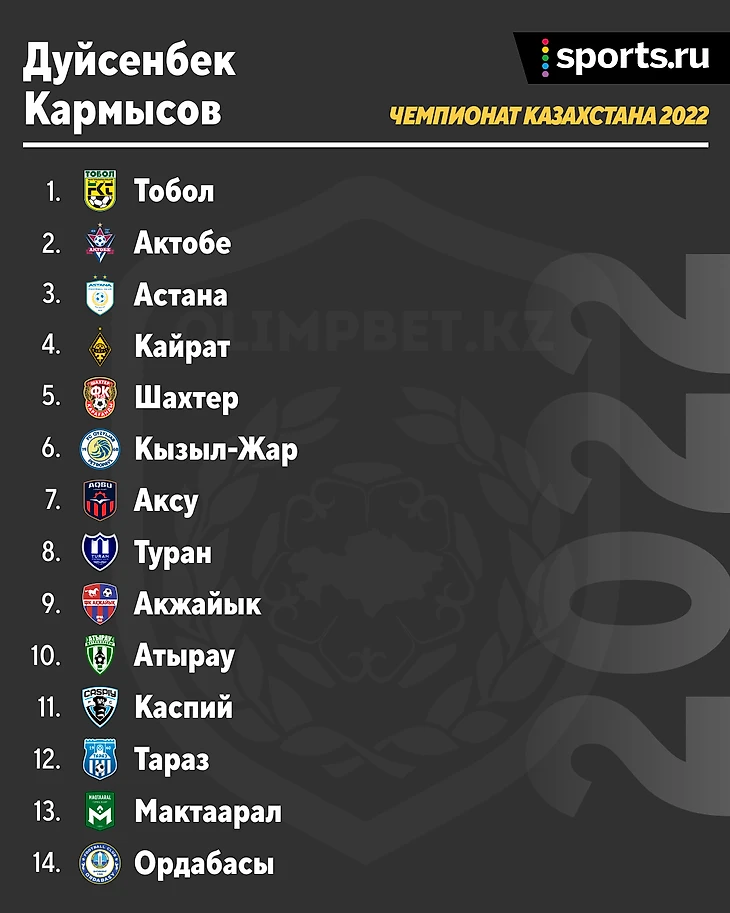 За выживание в этом году будут бороться «Махтаарал», «Туран», «Тараз» и «Акжайык». Так уж получилось, что в этом сезоне у нас много команд из южного региона страны, думаю, что всех местный бюджет не потянет и будут большие проблемы с финансированием по ходу сезона, но «Махтааралу» и «Турану» удастся спастись, а вот между «Таразом» и «Акжайыком» будет ожесточенная борьба за место под солнцем.
