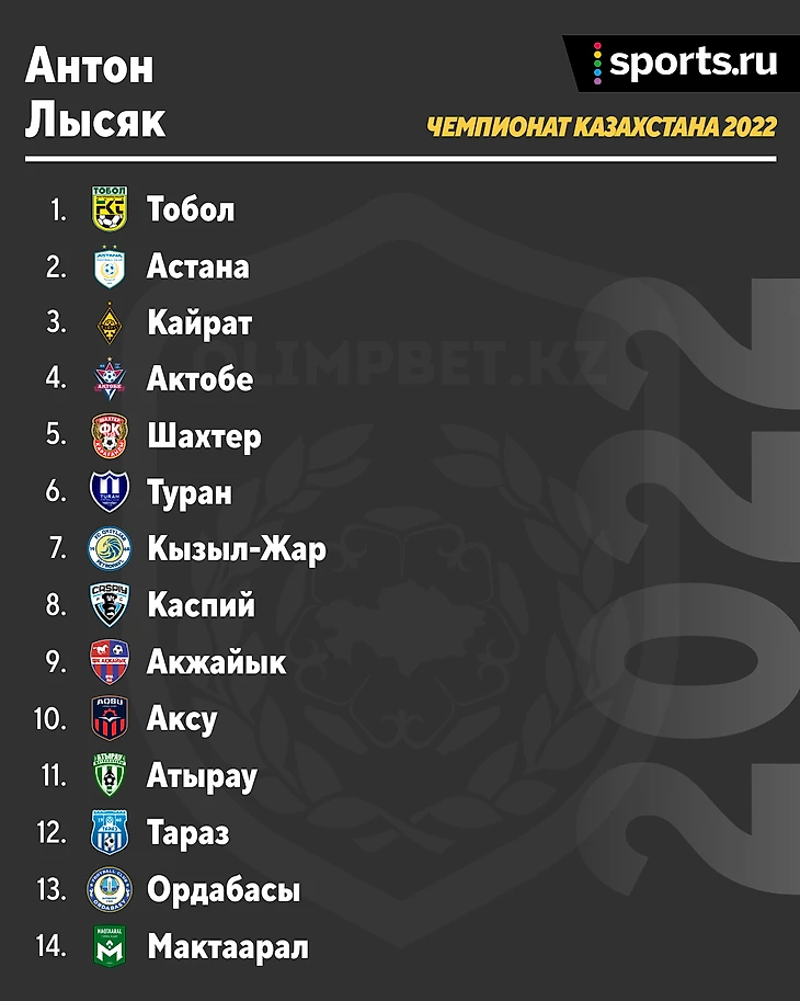 Внизу ожидаю увидеть «Орду» и «Мактаарал». Обе команды с трудом заявились на сезон, да и с финансами не все гладко. В наше время это очень важный аспект. Думаю, это и сыграет злую шутку с обоими коллективами.